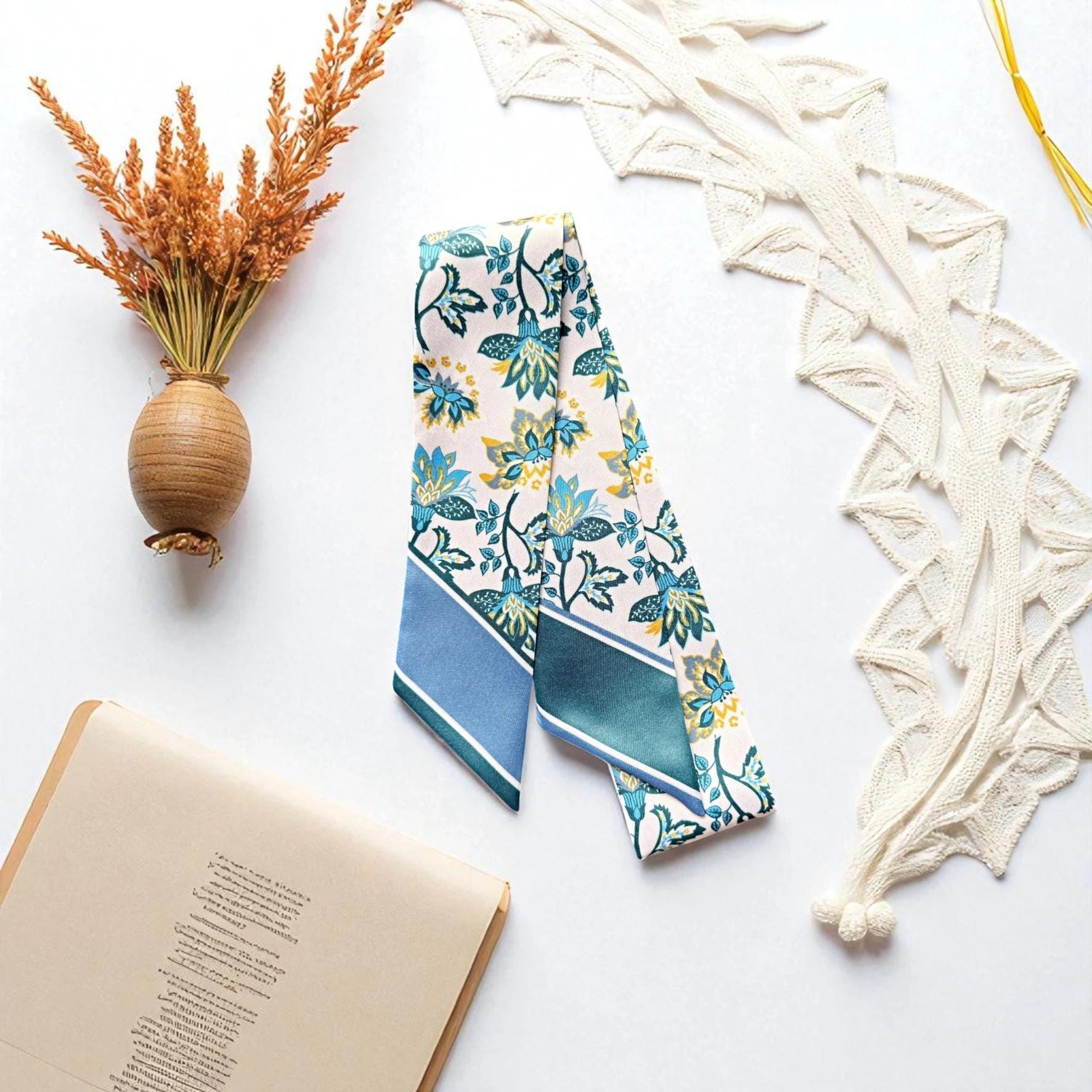It can be used as a hair scarf, a hand scarf, a hat decoration, or a neckerchief.