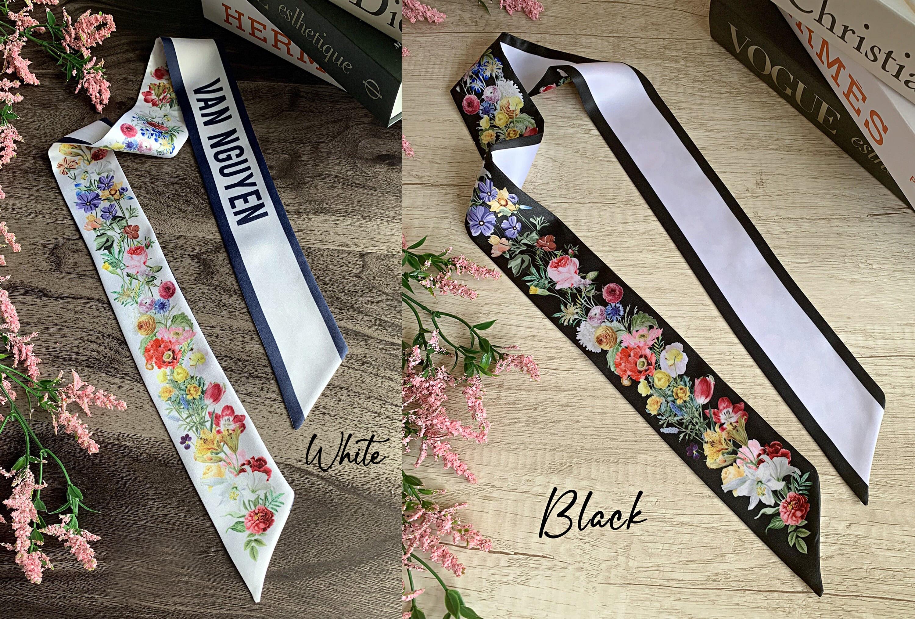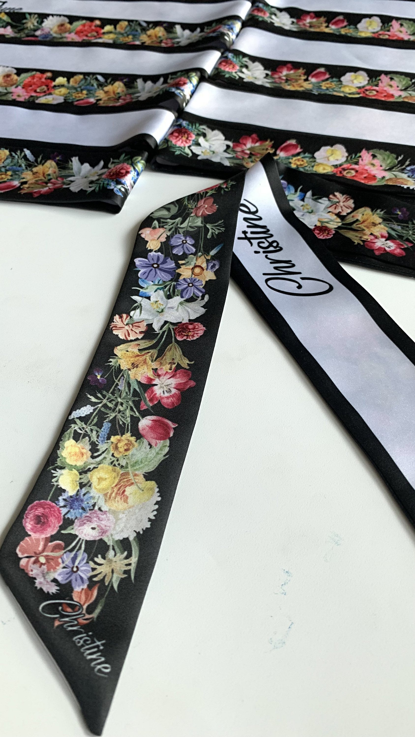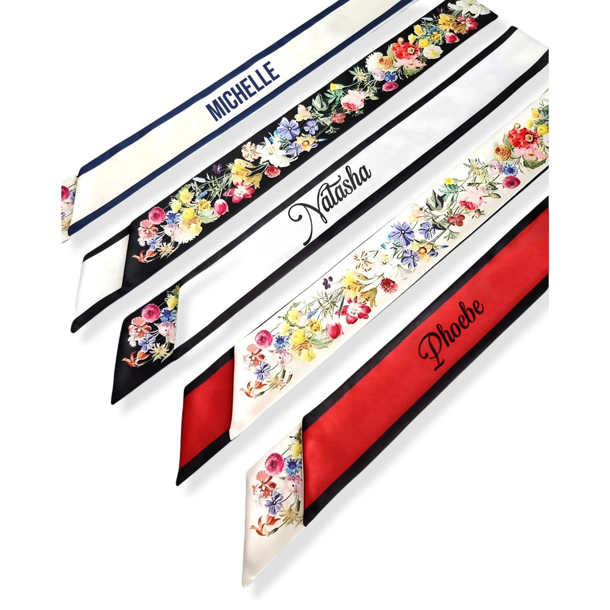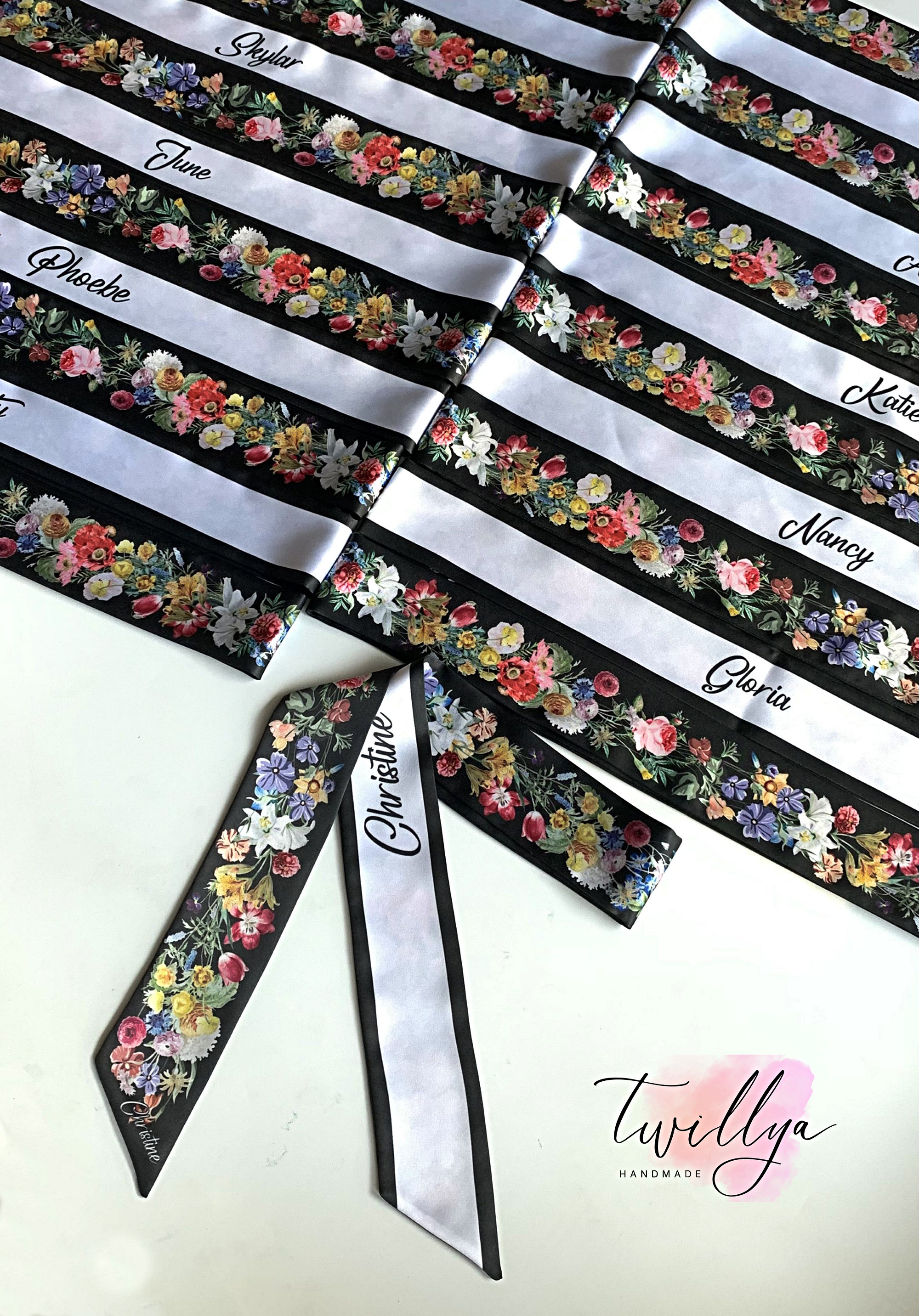 Stunning! I purchased 8 of these for my bridesmaids with their names on it as an homage to my favourite Dior Twilly. They're beautiful quality & look great wrapped around my bags