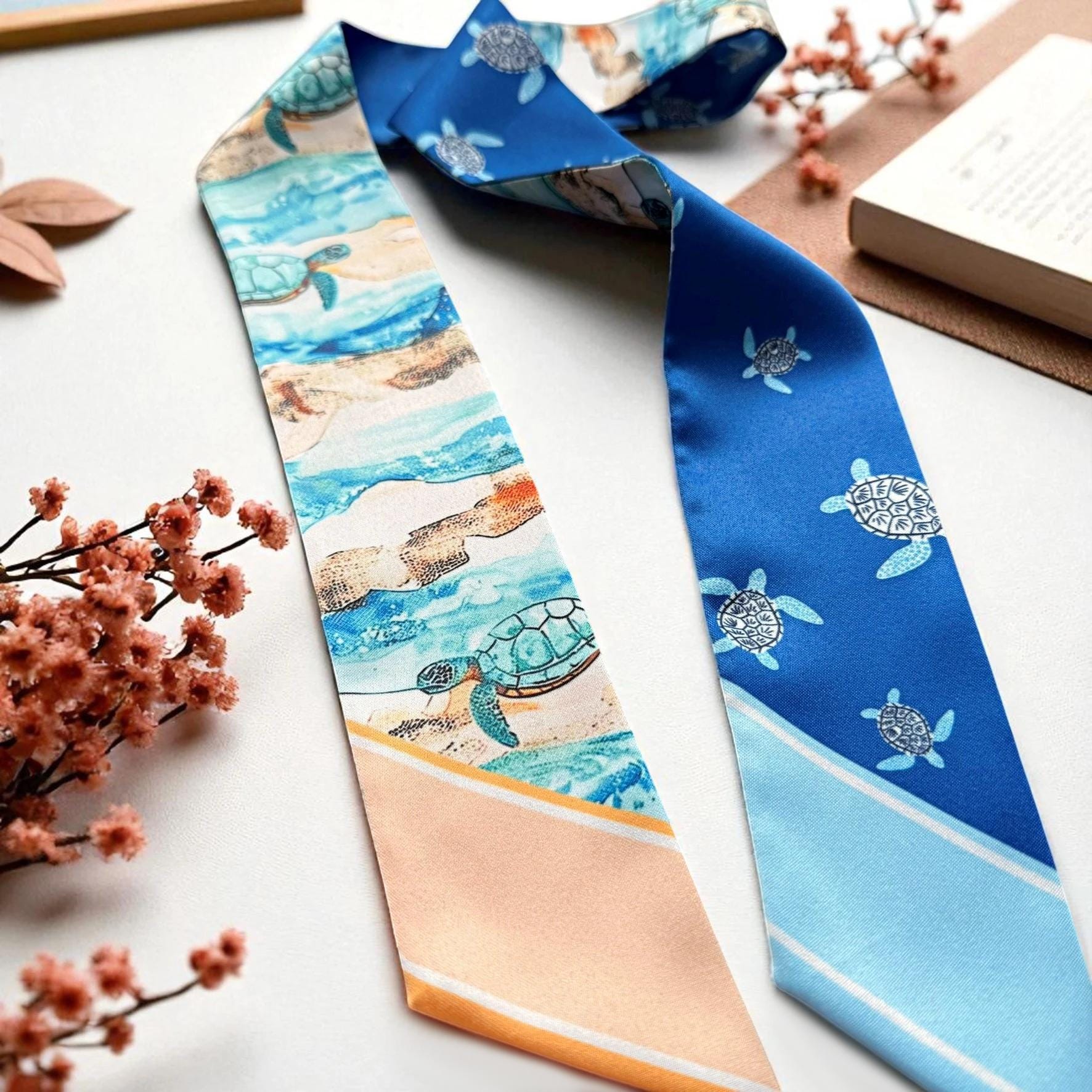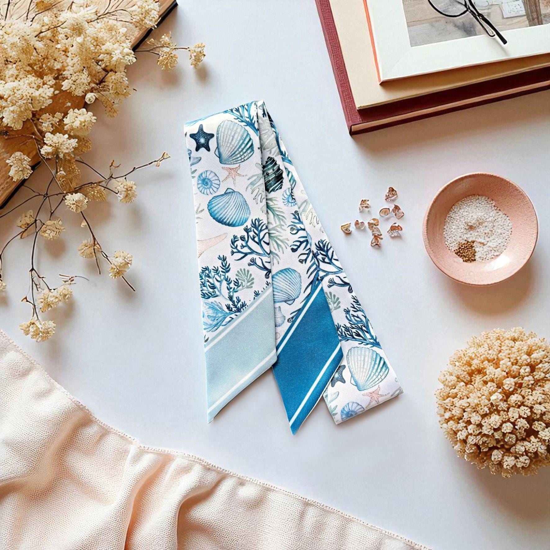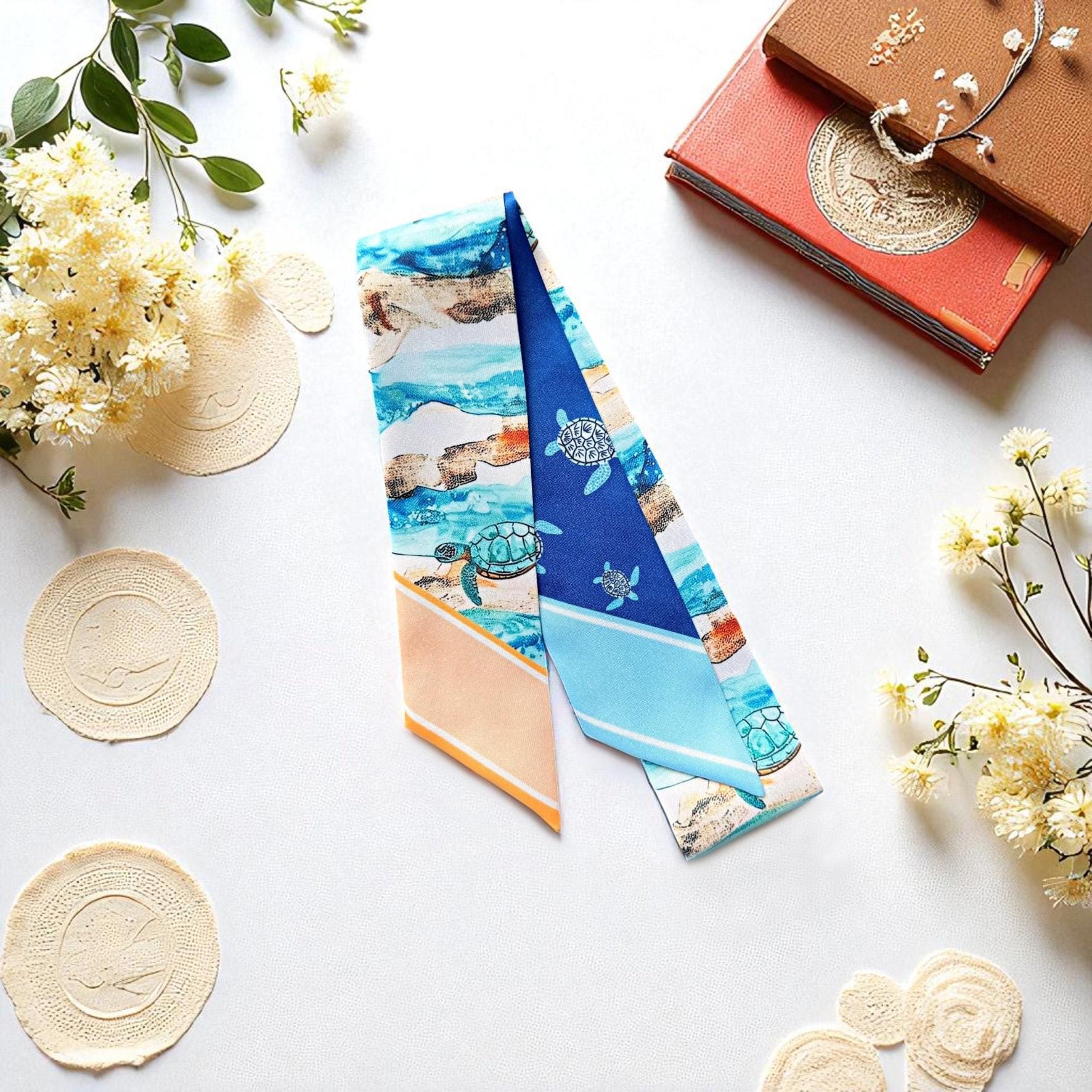 Ocean Theme Skinny Scarf: Personalized Handbag Accessory