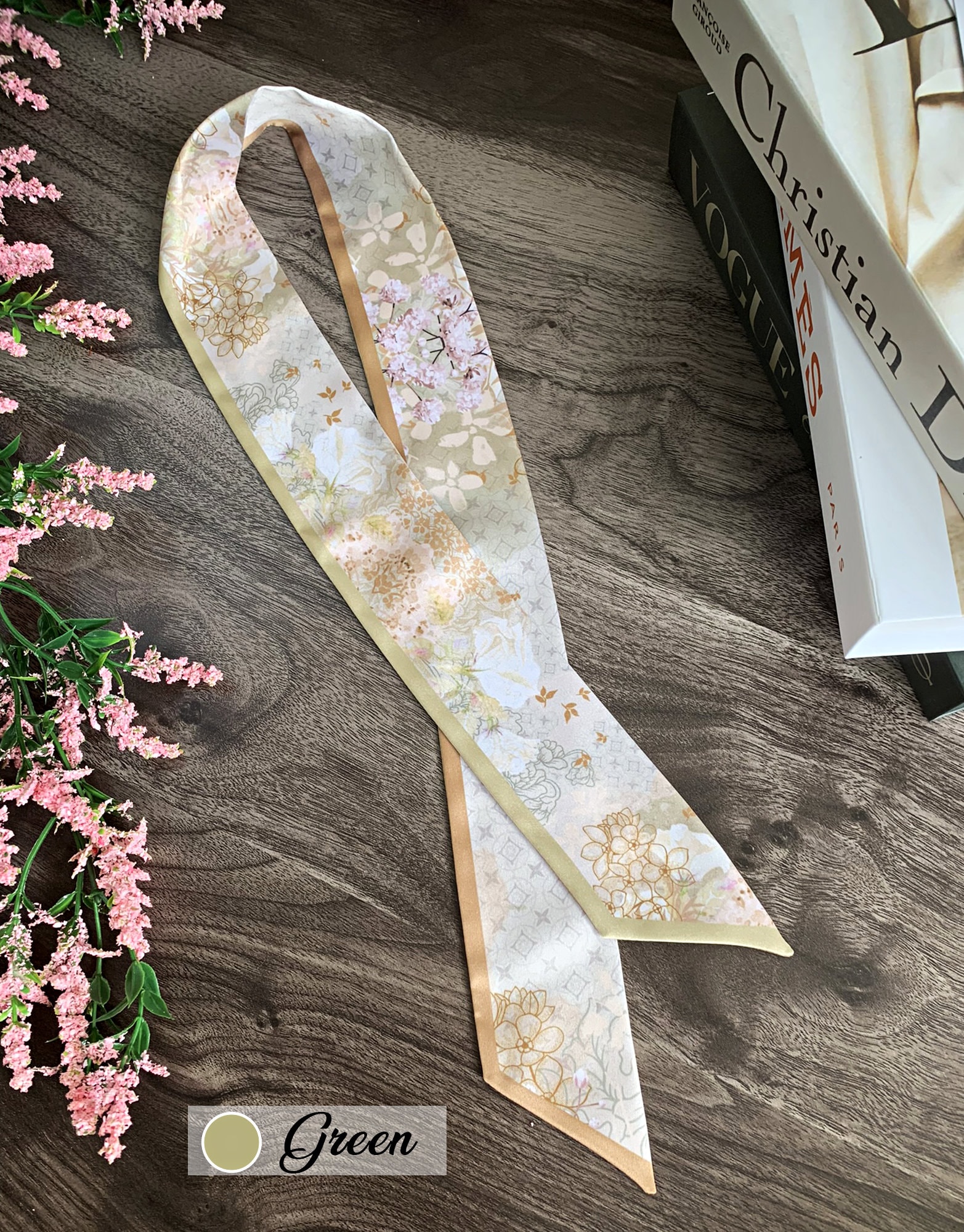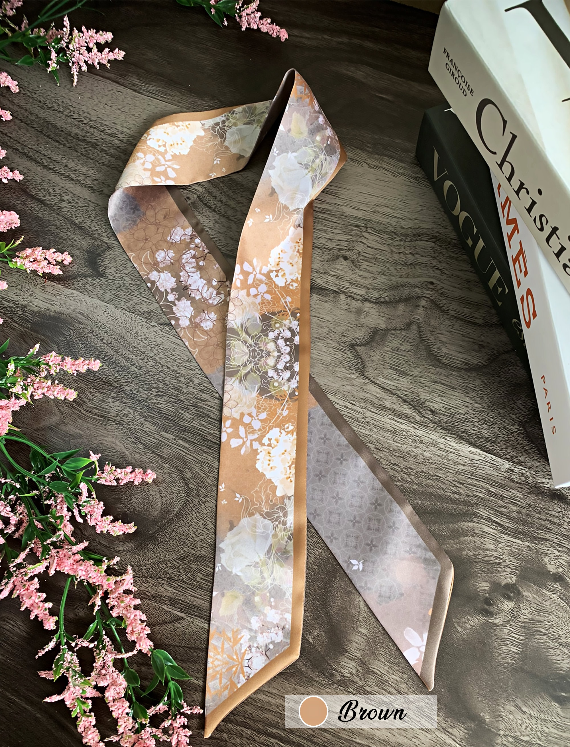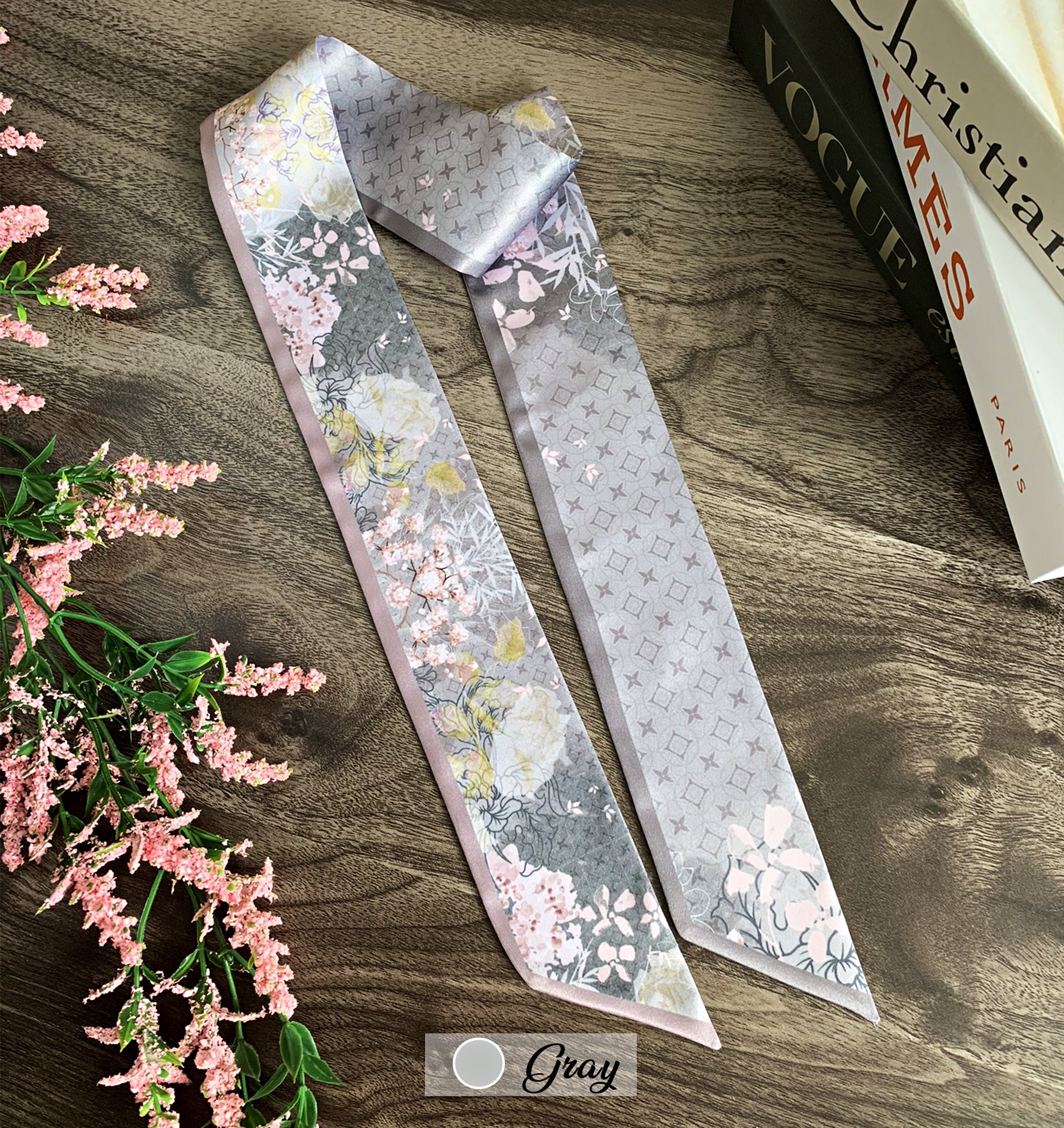 ▶For personalized products or if the motif you'd like is out of stock, you can place a preorder here: https://twillya.etsy.com/listing/1356622790/personalized-floral-handbag-scarf-satin.