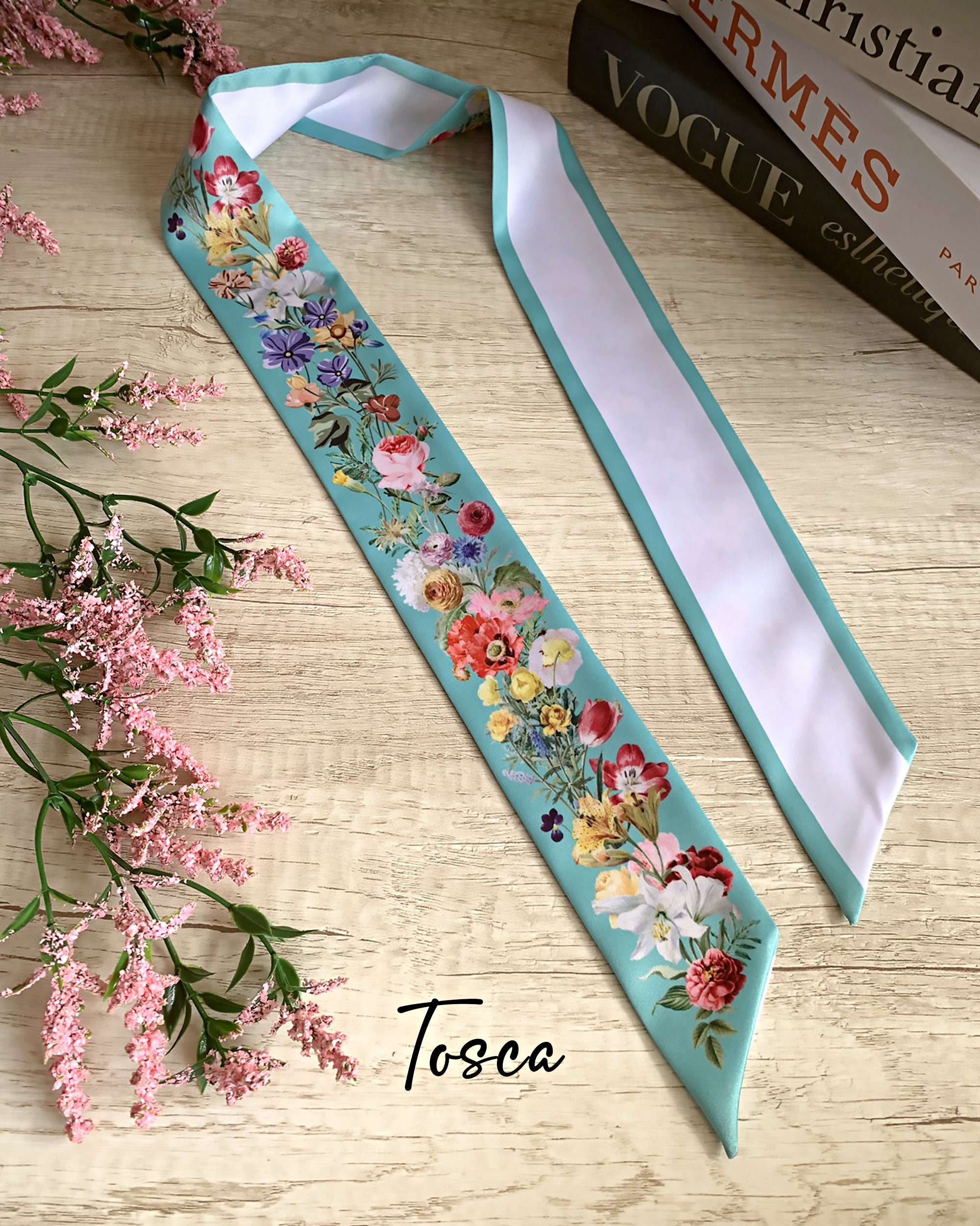 ▶For personalized products or if the motif you'd like is out of stock, you can place a preorder here: https://twillya.etsy.com/listing/1293554605/personalized-skinny-scarf-handbag-scarf