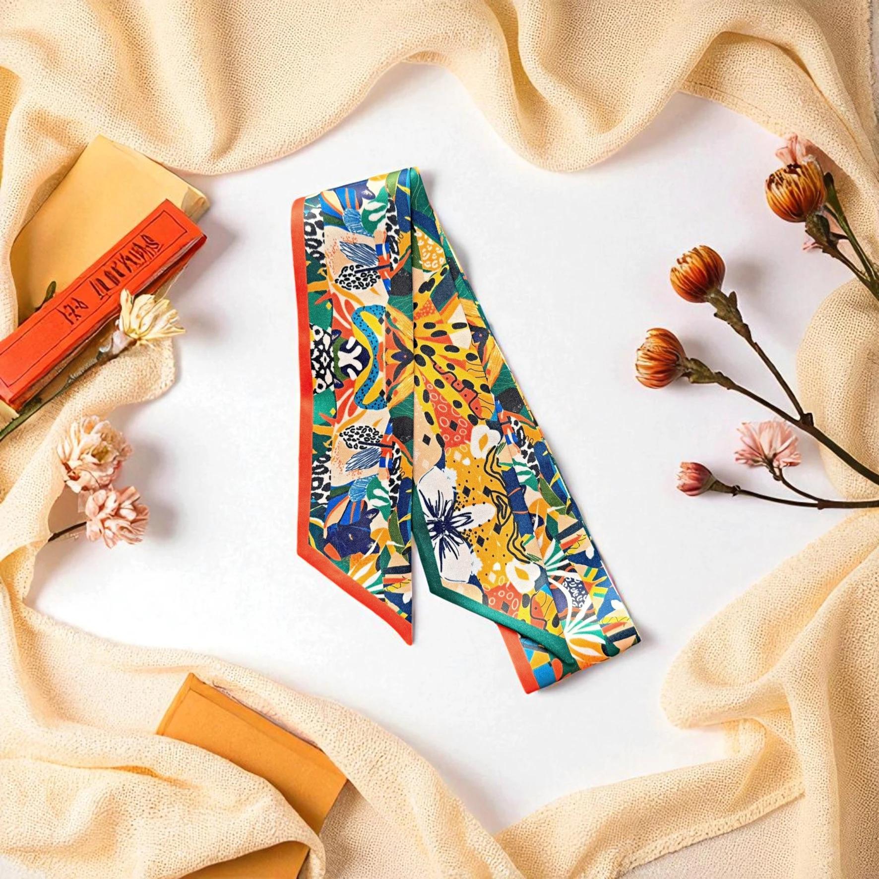 It can be used as a hair scarf, a hand scarf, a hat decoration, or a neckerchief.